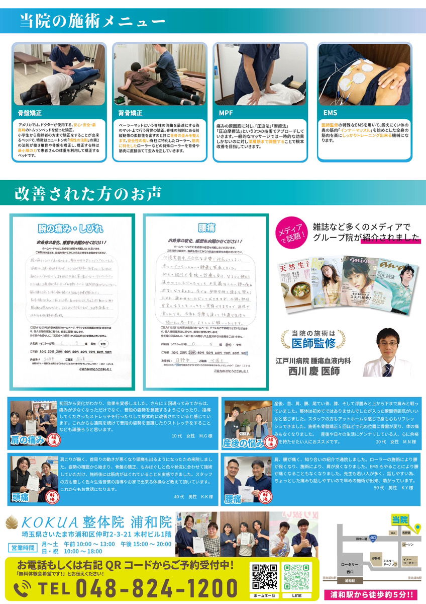 KOKUA鍼灸院・整骨院 浦和院でございます。